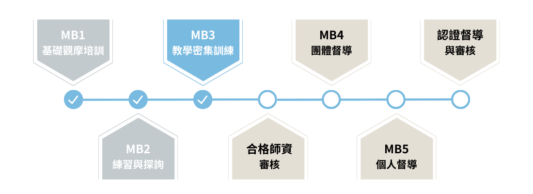 在教育密集訓練階段,您將透過小團體的學習活動,與實際操作練習帶領的體驗,深入且密集地探索八週正念減壓課程的內容。同時藉由共同研討、同儕互教、同儕/老師的反饋,對課程將有更深入的體驗與學習。